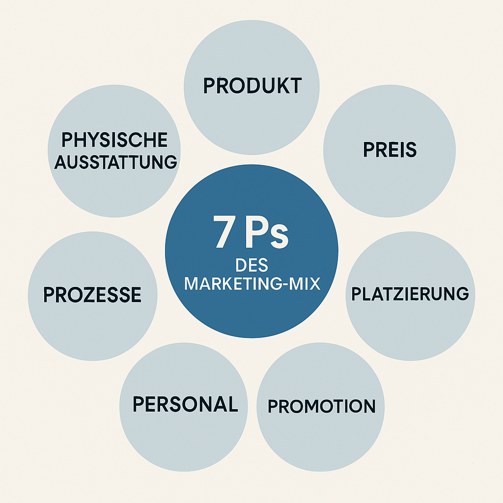 Marketing durchdringt nahezu alle Bereiche eines Unternehmens: von der Produktentwicklung über die Preisgestaltung und den Vertrieb bis hin zur Kommunikation mit dem Kunden. Um zu verdeutlichen, wie vielseitig Marketing wirklich ist, lohnt ein Blick auf das Konzept der „7 P“ des Marketing-Mix. Ursprünglich definierte der Marketingprofessor Jerome McCarthy in den 1960er Jahren vier zentrale Marketingbereiche (die 4 Ps: Product, Price, Place, Promotion). Spätere Marketing-Experten haben dieses Modell erweitert und drei weitere Bereiche hinzugefügt (People, Processes, Physical Evidence), um besonders für Dienstleistungsunternehmen alle relevanten Faktoren abzudecken. Auf diese Weise entstand das 7P-Konzept, das die Marketingstrategie auf sieben Säulen stellt – weit mehr als nur Werbung und Promotion.